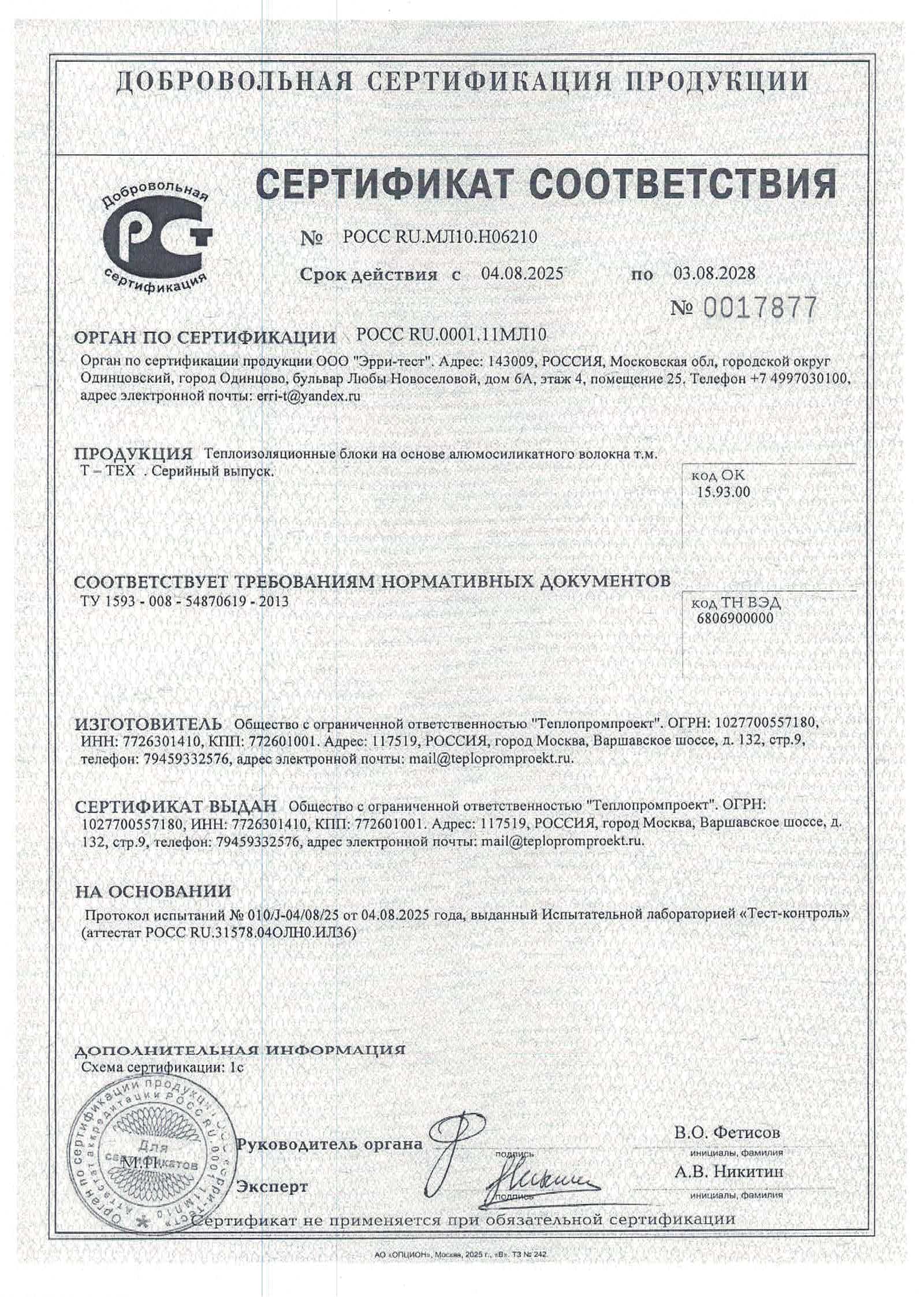 «В качестве футеровочного материала были применены модульные блоки из одеял огнеупорных теплоизоляционных иглопробивных марки Т - ТЕХ 1260 ТВ по ТУ 1593 - 006 - 54870619 - 2013, изготовленные на собственном производстве ООО "ТПП".