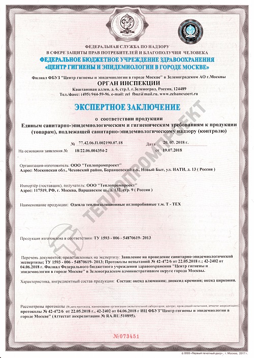 Одеяло (маты) теплоизоляционные представляет собой готовый к применению высокотехнологичный продукт. При его формировании для придания механической прочности, выдержки заданных толщин и плотностей, огнеупорное одеяло (мат) пропускается через иглопробивную машину, прошивая волокном, входящим в его структуру. Затем происходит термообработка, чтобы уменьшить усадку при рабочих температурах и исключить органические соединения.